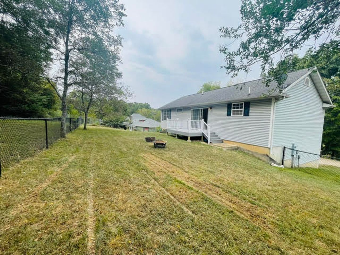 Beautiful 3 bedroom, 2 bathroom hilltop split level home with a two car garage, off of Highway 17 in Waynesville. Upstairs you'll see the kitchen which boasts bright updated countertops, plentiful amount of cabinet storage, updated stainless steel appliances, and a modernized flexible spray nozzle sink. The kitchen flows into the living room with a large opening and an open floorplan feel. Once in the living room you will notice the large comfortable carpeted space with lots of natural light, this space will be great for entertaining. There is a spacious dining room with quick access to the back deck and fenced in backyard thorough the large sliding glass doors. On the right hand side there are two spacious guest bedrooms with an abundance of natural light and mirrored closets. The upstairs guest bathroom has a sleek porcelain sink and tiled bathtub and stained glass window. Located downstairs, the massive master bedroom gives you the privacy you need and it's large enough to be utilized as a family room and/or theatre room. The master bedroom is finished with a broad walk-in closet and an on-suite that features dual sinks and a tiled bathtub. This home provides everything you need, while being close to Fort Leonard Wood and downtown Waynesville. Square footage is approximate. Additional fees may apply.